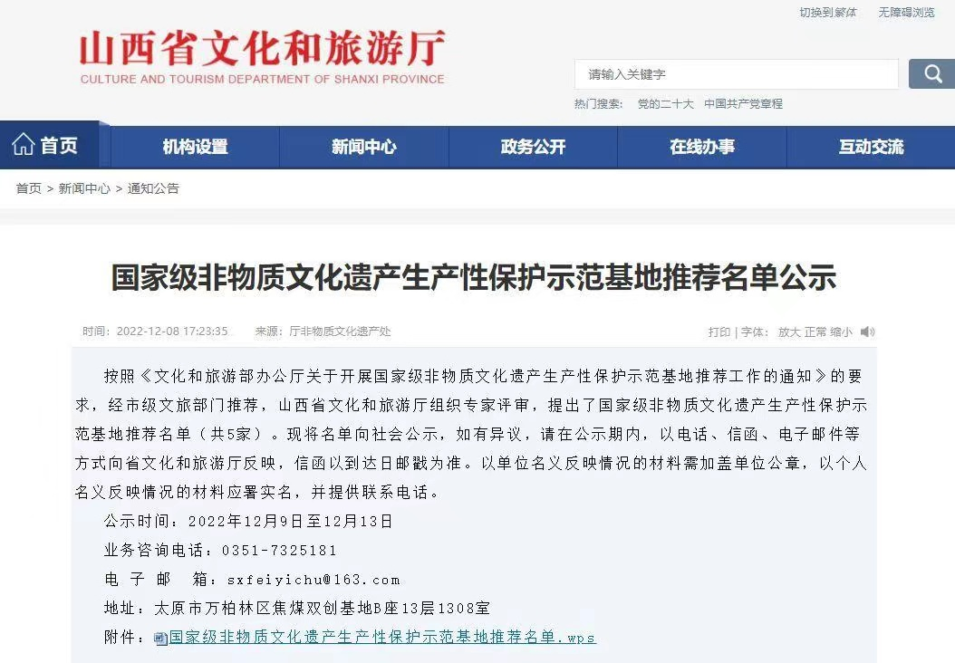 近日,根據(jù)《文化和旅游部辦公廳關(guān)于開展國家級非物質(zhì)文化遺產(chǎn)生產(chǎn)性保護示范基地推薦工作的通知》,經(jīng)市文旅部門推薦,山西省文化和旅游廳組織專家評審,平遙唐都推光漆器有限公司入選“國家級非物質(zhì)文化遺產(chǎn)生產(chǎn)性保護示范基地”推薦名單。