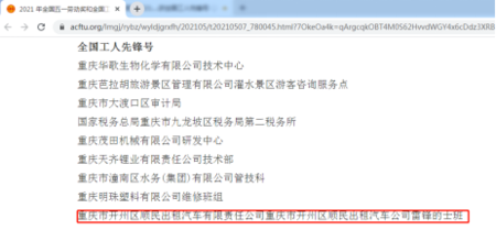 發(fā)表時(shí)間:2021-05-27 10:06作者:文/圖3 王大槐來源:開州出租 2021年5月7日中華全國總工會(huì)官網(wǎng)公布2021 年全國五一勞動(dòng)獎(jiǎng)和全國工人先鋒號(hào)名單(https://www.acftu.org/),重慶市開州區(qū)出租車公司雷鋒的士班獲2021年全國工人先鋒號(hào)表彰。
