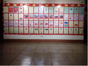 圖為百年黨史知識展墻和黨員大會會場布置 2.在辦公室過道一墻面上,進行了近4平方米面積的“泉承支部百年黨史學(xué)習(xí)動員大會和黨員喜迎百年黨慶作品展”展墻。共張貼展示了泉承支部開展百年黨史學(xué)習(xí)教育黨員大會圖片及黨員開展以:剪紙、拼圖、鋼筆書法、毛筆書法、攝像作品、詩歌等形式的作品30幅,較好地展示了泉承支部開展百年黨史學(xué)習(xí)教育和黨員喜迎百年黨慶的精神風(fēng)貌和永遠跟黨走的信心和決心。
