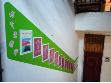 圖為布置在樓道墻面上的“共產(chǎn)黨精神”宣傳圖片 4.在進入公司大門及門內(nèi)1樓、2樓的樓道墻面上。之前這里是一塊監(jiān)管盲區(qū),整個墻面上有張貼不干膠、用墨寫及噴墨筆書寫的較多私人小廣告,把這個地方的墻面弄得面目全非,雖經(jīng)多次繼續(xù)整改,仍不見效,并嚴重地影響著公司企業(yè)的整體形象。近期支部書記同志利用工作空隙時間和大禮拜休息時間,對這塊監(jiān)管盲區(qū)進行認真整治,對樓道墻面進行清潔大掃除、徹底清除各類廣告痕跡、購買回乳膠漆、膩子膏、刮墻工具和波音紙等物品,對墻面進行“涂脂抹粉”的基本裝飾,較好地將原又臟又爛的墻面進行了覆蓋,并在白白凈凈的墻面上張貼上各類的風(fēng)景、動物等內(nèi)容的宣傳圖片,使整個樓道墻面煥然一新,充分展現(xiàn)出了企業(yè)的文化內(nèi)涵和形象,為喜迎建黨100周年增添了光彩!