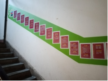 圖為布置在公司新整治樓道墻面上的各類圖片
