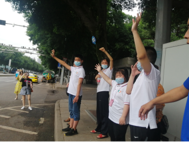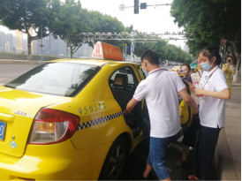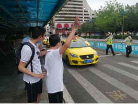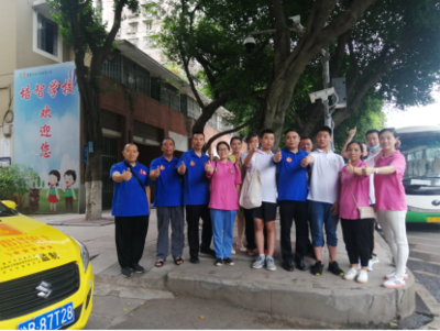 發(fā)表時間:2021-06-28 10:42作者:文/圖3 曹長莉來源:乘客大隊 2021年6月17日,重慶市“雷鋒的士”乘客志愿服務(wù)隊8名隊員和4臺出租車來到重慶市渝中區(qū)培智學(xué)校。重慶市渝中區(qū)智培學(xué)校是一所特殊兒童學(xué)校,同時也是重慶市“雷鋒的士”乘客志愿服務(wù)隊的長期幫扶基地。隊員們來到學(xué)校教孩子們打出租車,學(xué)習(xí)生活技能,提高自主能力。隊員們身體力行,以身作則,手把手教孩子們?nèi)绾未虺鲎廛嚕绾胃跺X,如何解決出行問題。