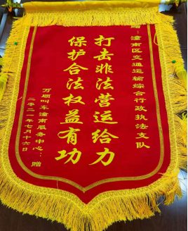 2021年7月16日,萬順叫車潼南服務(wù)中心代表將兩面寫著“嚴(yán)謹(jǐn)執(zhí)法 熱心服務(wù)”“打擊非法營(yíng)運(yùn)給力 保護(hù)合法權(quán)益有功”的錦旗送至交通運(yùn)輸綜合行政執(zhí)法支隊(duì),表達(dá)客運(yùn)合法經(jīng)營(yíng)者對(duì)支隊(duì)打擊非法經(jīng)營(yíng)“黑車”,維護(hù)客運(yùn)市場(chǎng)秩序的感激之情,對(duì)支隊(duì)近期開展的“打非治違”,查處非法營(yíng)運(yùn)工作給予充分肯定。