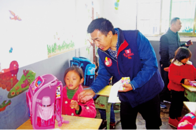 何先勇走進(jìn)山區(qū)小學(xué),為學(xué)生發(fā)放學(xué)習(xí)用品。