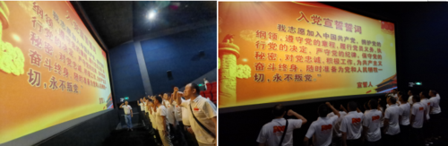 觀影前,黨支部書記對本次活動進行了開場講話,積極引導支部黨員立足本職工作,弘揚革命精神,隨后帶領(lǐng)黨員們莊重地重溫了入黨誓詞。