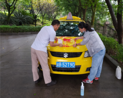 圖二 管理人員為星級車重新張貼標(biāo)示 在本次專項(xiàng)整治行動(dòng)中,廣大駕駛員對公司開展的檢查行動(dòng)表示認(rèn)同,對公司管理人員現(xiàn)場工作紛紛點(diǎn)贊,同時(shí)由于得到了管理人員的及時(shí)幫助感受到了公司帶給一線駕駛員的溫暖和關(guān)懷,當(dāng)班駕駛員開開心心、認(rèn)認(rèn)真真配合工作,主動(dòng)進(jìn)行自檢自查和整改落實(shí)。 通過本次專項(xiàng)整治活動(dòng),使公司營運(yùn)出租車的車輛設(shè)施設(shè)備、車容車貌等得到明顯改善,服務(wù)質(zhì)量有了明顯提高。 公司管理人員將不遺余力、不定時(shí)、不定點(diǎn)持續(xù)在不同場合、不同時(shí)段開展安全生產(chǎn)和服務(wù)質(zhì)量進(jìn)行督導(dǎo)、落實(shí)檢查責(zé)任,引導(dǎo)公司一線員工一定要認(rèn)清2021年“中秋、十一黃金周”出行旅客多、應(yīng)急疏散任務(wù)重、疫情防控形勢嚴(yán)峻復(fù)雜等,堅(jiān)決服從行業(yè)主管部門的調(diào)度指揮,切實(shí)把安全生產(chǎn)和服務(wù)質(zhì)量、疫情防控、安全、遵紀(jì)守法等各項(xiàng)工作做深做細(xì)做好做實(shí),為廣大出行乘客提供安全、舒適、便捷的出行服務(wù),做好自己的本職工作,力爭過一個(gè)健康、祥和、安全、和諧的中秋、十一國慶佳節(jié)。