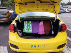 圖為公司星級“雷鋒的士”創(chuàng)建車輛干凈整潔靚麗的后備箱。
