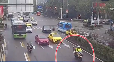 交巡警開道協(xié)助出租車運(yùn)送病人(道路監(jiān)控視頻截圖) (文/圖 李嘉男) |