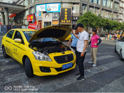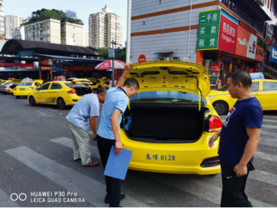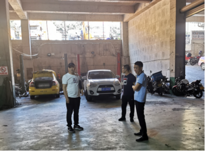 圖為安檢主管張勇、車隊長李清對車輛綜合檢查