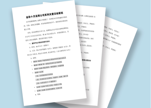圖為高博公司工會為金秋十月的系列關(guān)愛活動制定方案