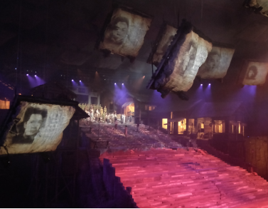 圖三 理想信念的考驗(yàn) 慶。而此刻,三弟林子杰與其他共產(chǎn)黨員被集中關(guān)押在渣磁器口滓洞集中營(yíng),過(guò)著非人生活,她們卻以驚人的毅力經(jīng)受住各種嚴(yán)刑折磨,國(guó)民黨軍官林子雄也主動(dòng)勸說(shuō)自己的三弟林子杰,“只要在自白書(shū)上簽字,就可以獲得人生自由”脫離折磨,然而林子杰與關(guān)押在集中營(yíng)共產(chǎn)黨人們,始終對(duì)中國(guó)必將迎來(lái)勝利的曙光充滿著期待,寧可犧牲自己也絕不在“自白書(shū)”上簽字,誓死不屈,堅(jiān)定理想信念。 當(dāng)中國(guó)共產(chǎn)黨人在北京天安門城樓上向世界人莊嚴(yán)宣告成立的消息傳到白公館、渣滓洞集中營(yíng)時(shí),監(jiān)獄里的第一個(gè)共產(chǎn)黨人都沉浸在興奮和幸福當(dāng)中,他們憑借自己對(duì)新中國(guó)的想象,在監(jiān)獄里制作了一面國(guó)旗,高唱著義勇軍進(jìn)行曲,