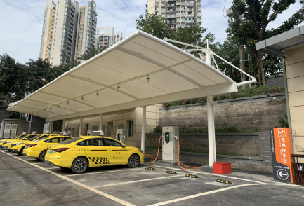 圖為“巡游出租汽車綜合服務(wù)區(qū)”充電站 為充分體現(xiàn)“綜合服務(wù)區(qū)”公益化運(yùn)營(yíng)的基本定位,服務(wù)區(qū)對(duì)所有進(jìn)場(chǎng)的巡游出租車均實(shí)行免費(fèi)停車服務(wù),并配備了全自動(dòng)洗車機(jī)(巡游出租車一律收費(fèi)5元,遠(yuǎn)低于市場(chǎng)價(jià))。同時(shí),在服務(wù)區(qū)內(nèi)設(shè)有休息區(qū)和茶水間,供前來辦事的駕駛員歇腳休息。