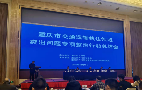 12 月 14 日至 15 日,重慶市交通運(yùn)輸執(zhí)法領(lǐng)域突出問題專項整治行動總結(jié)會在萬州召開,傳達(dá)貫徹交通運(yùn)輸部電視電話會議精神,全面總結(jié)專項整治行動經(jīng)驗成果,深入分析存在的問題不足,研究部署 2022 年度重點工作,推動執(zhí)法隊伍建設(shè)實現(xiàn)常治長效。市交通局黨委委員、二級巡視員杜昆出席會議并講話。市交通局領(lǐng)導(dǎo)及相關(guān)處室負(fù)責(zé)人、市交通執(zhí)法總隊副總隊長羅啟輝及法制部門負(fù)責(zé)人、各區(qū)縣交通主管部門分管領(lǐng)導(dǎo)和所屬交通綜合執(zhí)法支隊負(fù)責(zé)人 90 余人參加會議。