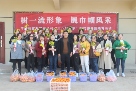 為紀念“3·8”勞動婦女節(jié),豐富公司女職工的業(yè)余文化生活,活躍企業(yè)文化氛圍,展示女職工的風(fēng)采,在公司領(lǐng)導(dǎo)的關(guān)懷下,3月8日組織全體女職工開展“樹**形象·展巾幗風(fēng)采”相約強森園踏青活動,體驗采摘樂趣。 大家采摘新鮮的沃柑、挖野蒜、挖野菜、包餃子,讓大家在身體極度放松和心情愉悅的狀態(tài)下舒緩平時的壓力。欣賞風(fēng)光,拍攝美景,吃甜甜的沃柑,每個人的臉上都綻放著絢爛的笑容,盡情享受著泥土和花果的芬芳。公司總經(jīng)理陳官權(quán)還貼心的為女職工們一一送上提貨券、油菜花束和棒棒糖,希望女職工像花兒一樣的美,生活像糖一樣的甜,在今后的工作中提高積極性,樹**形象,展巾幗風(fēng)采。