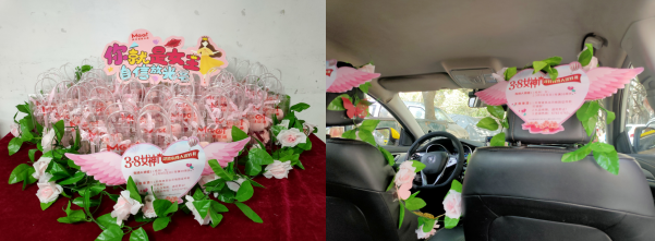 發(fā)表時間:2022-03-11 09:55作者:平曉霞來源:東贏 陽春三月,萬物復蘇。在這生機盎然的美好時節(jié),我們迎來了第112個國際勞動婦女節(jié),也是我國第99個婦女節(jié)。為切實開展好“三八”節(jié)主題活動,讓廣大的女性乘客感受美天交通與眾不同的節(jié)日祝福。美天東贏-恒康聯(lián)合支部委員會于2022年3月8日開展“與春天同行,讓美麗綻放”的主題活動。 活動前一天,一群雷鋒的士開車到指定地點,紛紛領取贈送女性乘客的節(jié)日禮品,禮品中有可愛袖珍的多肉植物和用蝴蝶結折疊好的精美的小熊毛巾,和公司管理員工共同對車輛進行精美布置,一串串粉色的玫瑰花藤圍繞前后排座椅上,充滿了春的氣息,渲染了濃厚的節(jié)日氛圍,給乘客耳目一新的乘車體驗。