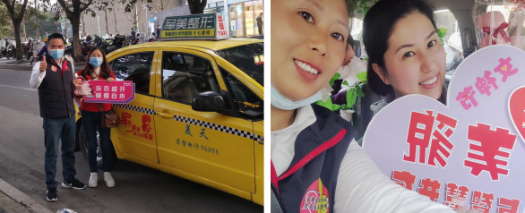 圖依次為三八節(jié)雷鋒的士趙建、毛小華、盧為紅、劉太勇為乘客贈送精美禮品 公司開展“三八節(jié)”活動已持續(xù)多年,每年采取多種多樣的活動形式,通過開展活動,讓廣大女性乘客感受到美天交通出租汽車創(chuàng)新的服務方式,體現(xiàn)企業(yè)“以人為本,優(yōu)質服務”的創(chuàng)新理念,彰顯企業(yè)良好的社會形象,為巡游出租汽車行業(yè)精神文明建設助推力量。 圖文:平曉霞 |