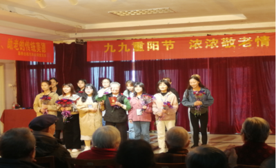 獲得抗美援朝獎(jiǎng)?wù)碌睦夏棠掏鹾袷缗c大學(xué)生志愿者們一起唱《我和我的祖國(guó)》 老人們覺(jué)得今年的重陽(yáng)節(jié)活動(dòng)非常有意義,活動(dòng)使在場(chǎng)的每位老人都心情舒暢,快樂(lè)的過(guò)了一個(gè)溫馨祥和節(jié)日,極大的豐富了老人們生活,促進(jìn)了老人與社會(huì)與人的交流,進(jìn)一步弘揚(yáng)了中華民族傳統(tǒng)美德,展現(xiàn)尊老、敬老、助老的精神風(fēng)貌,進(jìn)一步營(yíng)造孝老敬親的新風(fēng)尚。 (文/圖 嘉僑黨支部) |