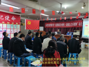 圖為書記同志正在認真組織大家共同學(xué)習《推動黨史學(xué)習教育常態(tài)化長效化的意見》。