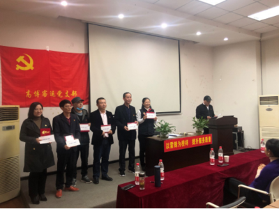 宣誓現(xiàn)場 大會(huì)第五項(xiàng),吸收陳慶錫同志為中共預(yù)備黨員表決。首先由積極入黨分子陳慶錫同志做自我簡短發(fā)言,接著由他的入黨介紹人李清同志發(fā)言,通過現(xiàn)場表決,與會(huì)人員全票通過。 大會(huì)第六項(xiàng),對(duì)2019年優(yōu)秀黨員評(píng)選細(xì)則進(jìn)行公示并發(fā)獎(jiǎng)。高博黨支部共評(píng)出2019年度優(yōu)秀黨員6名,他們是:陸娟、吳碧全、劉平、曾云君、隆忠昇、楊賢舉。黨支部聶書記為大家頒發(fā)了獲獎(jiǎng)證書及獎(jiǎng)金。