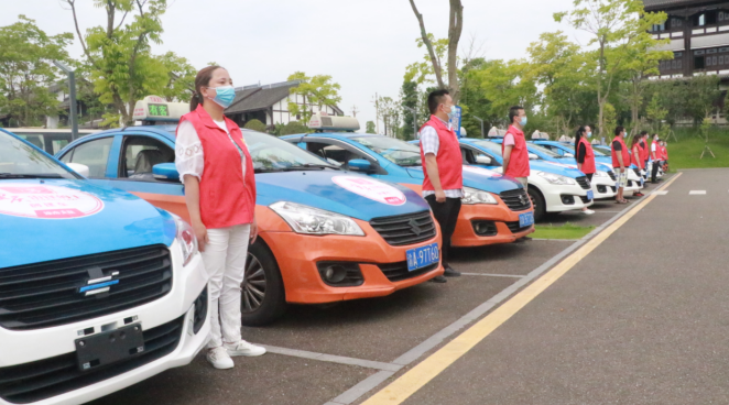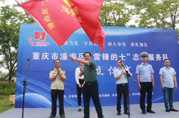 啟動儀式上,“雷鋒的士”志愿服務(wù)支隊以雷鋒頭像、“雷鋒的士”創(chuàng)建車為內(nèi)容統(tǒng)一制作標語,參加現(xiàn)場啟動儀式的40輛出租車統(tǒng)一張貼標牌,整齊劃一地排列在活動現(xiàn)場。來自潼南區(qū)“雷鋒的士”志愿服務(wù)支隊被授予隊旗,該支隊一、二、三大隊被正式授牌。