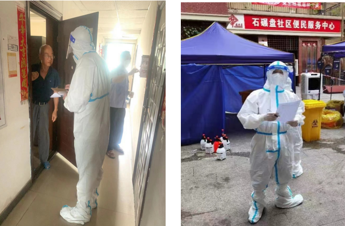 發(fā)表時間:2022-08-26 15:33作者:文 文瑜 圖 葉未來源:泉承 2022年8月18日19點30分起,重慶沙坪壩區(qū)東部城區(qū)因疫情嚴峻被臨時管控,必須進行全員核酸,在消息全網(wǎng)發(fā)布后,所有在這管控區(qū)內(nèi)的車輛,人員實施只進不出的管理規(guī)定。 泉承公司渝A90T31號三星級“雷鋒的士”創(chuàng)建車輛優(yōu)秀雷鋒隊員也是支部黨員葉未同志,因搭戴了沙坪壩的乘客,被困在了臨時管控區(qū)域內(nèi),當(dāng)天晚上就開始全員,陸續(xù)排隊,做核酸,由于管控時分的突然,好多外區(qū)的人員都因被管控在里面,因為回不了家,頓時有一些茫然,一些不安分和一些混亂。此時需要我們志愿者加入到我們的疫情防控和維護次序的人員中去。我們的黨員葉未同志,在得知當(dāng)前情況復(fù)雜,人多且亂的同時,自己身為黨員,肩膀上扛著重任,一定要起到模范帶頭作用。要第一時間沖到需要我們的第一現(xiàn)場去幫助醫(yī)護人員減輕負擔(dān),維護好現(xiàn)場次序,平復(fù)外區(qū)人員因臨時管控,帶來了一些負面情緒。讓他們配合好醫(yī)護人員,做好核酸檢測。 8月21日17點30分,葉未在覃家崗街道金橋社區(qū)報道,晚上19點,社區(qū)居民開始做核酸檢測,葉未志愿者與社區(qū)工作人員一道,維護現(xiàn)場秩序,讓參與做核酸的市民,依次排隊保持一米距離,防止交叉感染。晚上22點30分結(jié)束核酸檢測。8月22日17點30分,在天星橋街道報道吃過晚飯便開始核酸信息采集系統(tǒng)培訓(xùn),然后乘車到石碾盤社區(qū)宏華園風(fēng)控區(qū)點位進行工作交接,晚上11:30分乘車回酒店。8月23日早上7點30分,從酒店出發(fā),乘車到宏華苑點位,九點開始,開始了一天的工作,首先是為封控小區(qū)居民分發(fā)蔬菜和日用品,分發(fā)完后差不多又要搬運送來的盒飯回點上辦公室,然后工作人員和志愿者分批就餐。下午18點開始做核酸檢測,做準(zhǔn)備,因為葉未負責(zé)高風(fēng)險風(fēng)控樓群,必須每家每戶出門在樓棟指定點做核酸檢測,不方便下樓的居民還得上門檢測,遇到不配合的居民,葉未他們都會耐心的勸導(dǎo),必須保證核酸檢測不漏一人。他們每次進樓層都必須穿隔離服,帶兩雙醫(yī)用手套,每個人一個半小時左右輪換,每次脫完隔離服后全身上下都已經(jīng)濕透了。一般情況下,第一批次晚上23:30分左右工作結(jié)束然后等待交通車回酒店。第二天又開重復(fù)頭天工作,因為葉未點位屬于高險區(qū),短時間內(nèi)應(yīng)該解不了封。 關(guān)于這點作為黨員的葉未已做好了心里準(zhǔn)備。時刻以行動,奉獻自己。 葉未所在的這個點位分了幾個組,街道讓他當(dāng)其中一個組的組長,連同他在內(nèi)共九人,八人都由葉未安排他們具體工作。 抗疫還沒有結(jié)束,我們大家還要為重慶動態(tài)清零,作出我們的貢獻,無論在哪里我們都需要葉未這樣的志愿者,時刻胸懷感黨恩,跟黨走的精神。需要他們對黨,對人民的忠誠之心,對社會的回報之情。因為有了他們的辛勤無私的付出,才能為我們抗疫早日結(jié)束,取得實質(zhì)性進展。