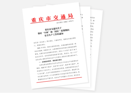 發(fā)表時(shí)間:2022-09-27 15:06作者:羅繼偉來(lái)源:高博 2022年9月份,面臨中秋、國(guó)慶兩個(gè)節(jié)日的來(lái)臨,重慶交通必將迎來(lái)新一輪出行高峰,受森林火災(zāi)、山體滑坡等自然災(zāi)害以及新冠疫情反彈的影響,交通行業(yè)的安全保障任務(wù)尤為艱巨。9月13日,重慶市交通局及時(shí)發(fā)布渝交便函【2022】1579號(hào)文,督促各單位緊緊圍繞“防風(fēng)險(xiǎn)、保安全、迎二十大”這條主線,明確重點(diǎn),狠抓落實(shí),守牢安全生產(chǎn)底線。重慶市道路運(yùn)輸事務(wù)中心在各單位進(jìn)行了緊急轉(zhuǎn)發(fā),再次強(qiáng)調(diào)安全生產(chǎn)的重要性。