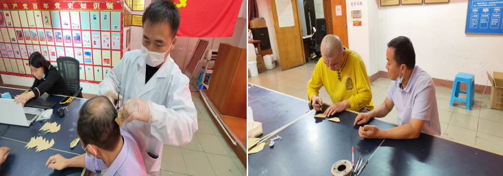 圖為工作人員在對(duì)毛發(fā)進(jìn)行采集 圖為公司領(lǐng)導(dǎo)在給駕駛員講解