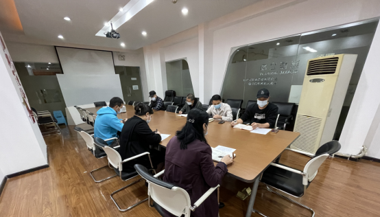 圖為客運(yùn)宋經(jīng)理認(rèn)真聽(tīng)取各部門疫情工作匯報(bào)