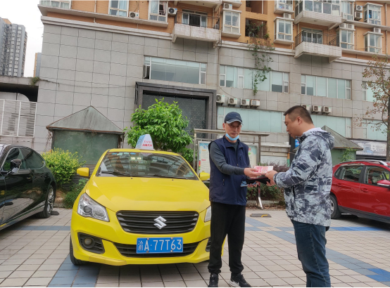 圖一 黃師傅將失物交給公司管理人員 根據(jù)黃師傅的回憶,他覺得應(yīng)該是當(dāng)天下午13:40左右,在幸福廣場上車、恒大華府下車那個乘客的。按照黃師傅提供的信息,信息部調(diào)取監(jiān)控進(jìn)行比對,初步確認(rèn)失主應(yīng)該是這個乘客。因?yàn)?/span>乘客下車是微信支付的,于是黃師傅通過微信平臺給乘客留言并留下自己的聯(lián)系電話。 當(dāng)日乘客回到家后,因忙于其它事情,沒有發(fā)現(xiàn)自己攜帶的包丟失了,直到第二天才看到黃師傅發(fā)送的信息,這才發(fā)現(xiàn)自己的包不見蹤影了,于是撥打黃師傅在平臺上留下的電話聯(lián)系黃師傅,并說出包的裝有現(xiàn)金16700元、創(chuàng)可貼3張。黃師傅確認(rèn)無誤后,立即開車前往失主住所一同到鑫隆達(dá)公司認(rèn)領(lǐng)丟失的錢包。