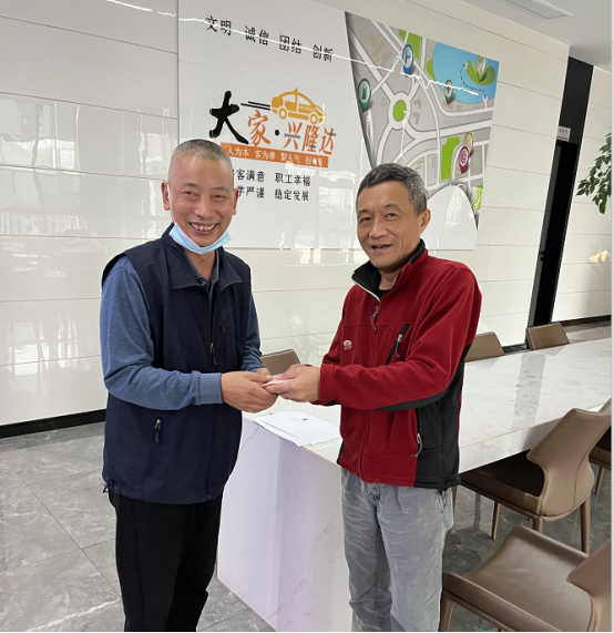 圖二 黃師傅將失物交給失主 出租汽車行業(yè)是一個服務(wù)性很強(qiáng)的“窗口”行業(yè),每一輛出租車都是城市文明的窗口,黃師傅雖然只是鑫隆達(dá)出租汽車公司的一名普通出租車駕駛員,但是他拾金不昧的行為以及急人所急、想人所想的態(tài)度為我市出租行業(yè)增添了光彩,值得全體從業(yè)人員學(xué)習(xí)。 多年來,重慶鑫隆達(dá)商貿(mào)有限公司設(shè)立拾金不昧、好人好事事跡突出的駕駛員“拾金不昧道德風(fēng)尚獎”制度,對文明服務(wù)、誠信經(jīng)營、安全駕駛等方面的優(yōu)秀駕駛員進(jìn)行表彰和獎勵,激勵先進(jìn)、樹立典型,號召全體駕駛員立足崗位踐行社會主義核心價值觀,積極響應(yīng)行業(yè)文明誠信要求,做好規(guī)范經(jīng)營、打表收費(fèi)、文明優(yōu)質(zhì)服務(wù)工作,展示行業(yè)良好形象。 (文/圖 鐘秀蘭) |