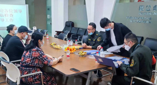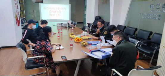 圖為檢查組一行對(duì)我司疫情防控工作進(jìn)行仔細(xì)檢查