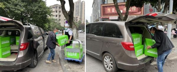 為疫情防控人員運(yùn)送盒飯(圖/楊興勝)