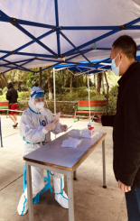 圖為盧忠軍在張貼倡議書(shū) 圖為盧忠軍在核酸采集登記 |