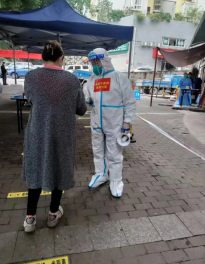 圖為葉未在維護(hù)核酸現(xiàn)場秩序 |