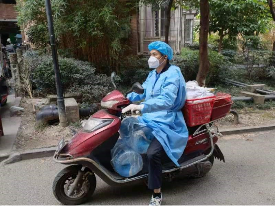 殷其龍利用喇叭通知居民下樓做核酸 殷其龍在核酸檢測工作現(xiàn)場 由于所在小區(qū)管控越來越嚴(yán)格,居家隔離的居民逐漸多了起來,目前社區(qū)工作人員較少,急需志愿者幫忙運送物資。殷其龍往往見縫插針,充分利用空閑時間,使用電動車為小區(qū)居民運送生活物資。他認(rèn)真細致按照樓棟號將物資進行分類,搬運各類生活物資穿行于社區(qū)樓棟間,并配送至封控居民樓下,再由專業(yè)人員送貨上門。一天往返頻次不計其數(shù),全力保障群眾所需,打通運送物資的“最后一公里”。每天工作結(jié)束后,防護服都在他的臉上印出一道道痕跡,手上也被沉重的物資勒的通紅。面對家人的擔(dān)心,殷其龍常說:“雖然每天工作比較辛苦,但是一切都是值得的,這是一份光榮的任務(wù),也是一個黨員的責(zé)任和擔(dān)當(dāng)?!?/span>
