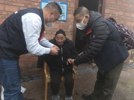 圖為隊(duì)員們?yōu)槔先思糁讣?/span>