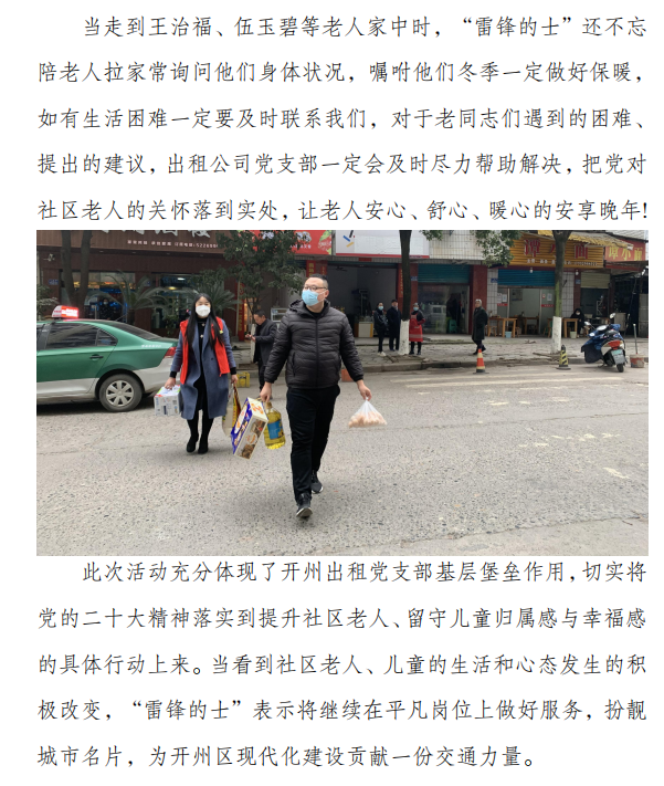 關(guān)懷顯真情 祝福暖人心 開州出租黨支部開展社區(qū)送溫暖活動