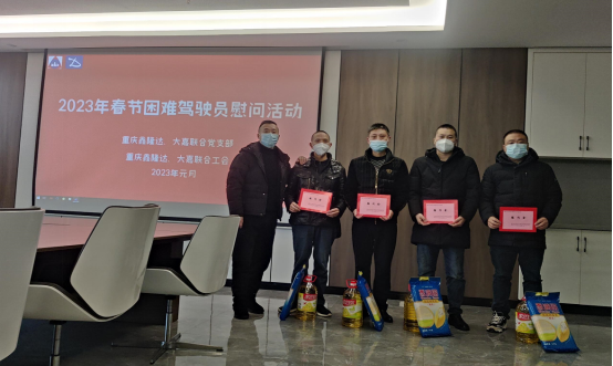 發(fā)表時間:2023-01-17 13:37作者:鐘秀蘭來源:鑫隆達 1月16日,重慶鑫隆達、大嘉出租汽車公司聯(lián)合黨支部、聯(lián)合工會在公司辦公樓二樓會議室親切慰問了4名困難黨員和困難職工,并為他們代發(fā)了上級主管部門春節(jié)“走訪慰問、送溫暖活動”的食用油、大米等慰問品和慰問金。