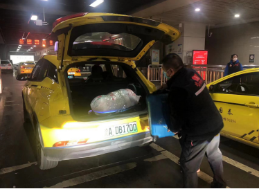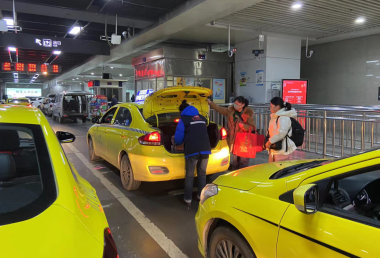 “雷鋒的士”公運(yùn)支隊(duì)隊(duì)員徐偉主動(dòng)為乘客搬運(yùn)行李