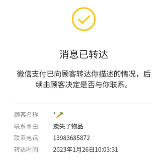 付海軍通過微信給乘客留言