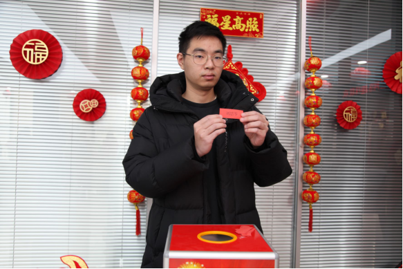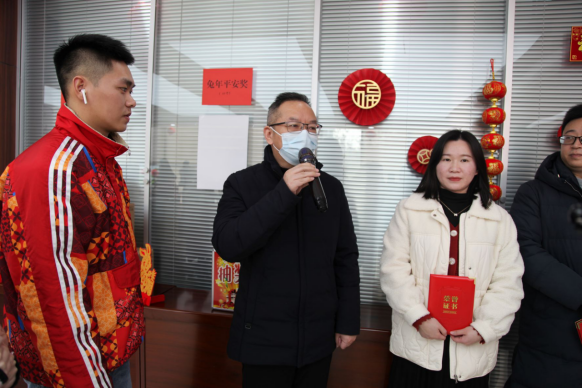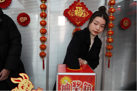 生肖屬兔的職工代表為大家抽取新春賀禮
