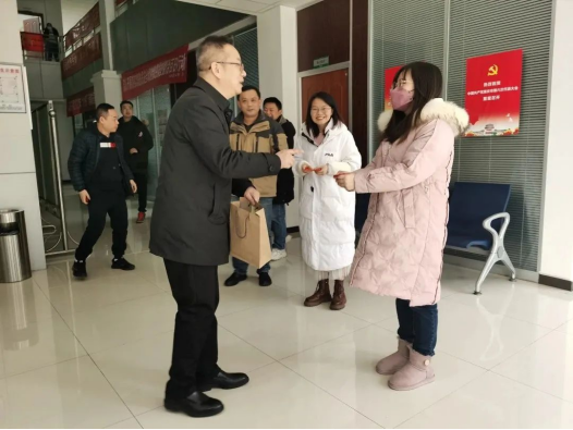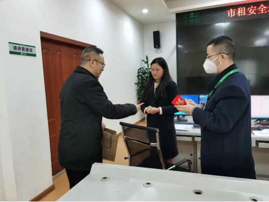 發(fā)表時(shí)間:2023-02-02 14:48作者:李哲宇來源:市租 濃濃年味,歲寒情暖。在新春佳節(jié)之際,市租公司領(lǐng)導(dǎo)帶隊(duì)走訪慰問了值班值守員工,向他們送去新春的祝福和問候。先后來到金山服務(wù)區(qū)、營運(yùn)中心、中北大樓對堅(jiān)守崗位的員工們表示親切慰問,對他們放棄了與家人團(tuán)聚的擔(dān)當(dāng)奉獻(xiàn)精神給予高度評價(jià),并為他們送去了春節(jié)禮包。同時(shí)還詳細(xì)詢問了值班值守情況,并強(qiáng)調(diào)一定要將春節(jié)期間的安全生產(chǎn)措施落實(shí)到位,保障春運(yùn)安全形勢總體平穩(wěn)。