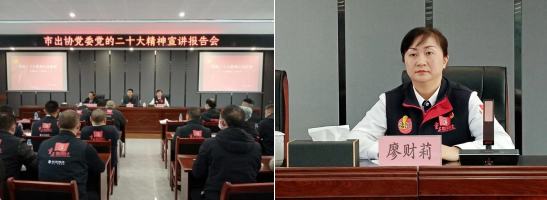 圖為報(bào)二十大精神宣講告會(huì)現(xiàn)場(chǎng) 圖為黨代表廖財(cái)莉給大家宣講二十大