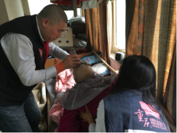 雷鋒隊員趙蓉為馮婆婆擦拭身體 |