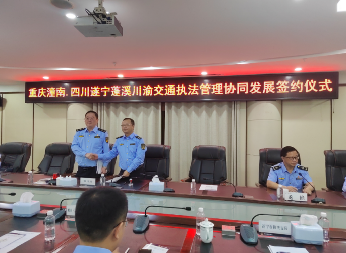 2023年川渝交通運輸綜合行政執(zhí)法工作聯(lián)席會第一次會議,4月21日上午在潼南區(qū)交通局六樓會議室召開。這是2023年首次由川渝兩地共同召開的交通執(zhí)法工作聯(lián)席會,潼南交通執(zhí)法支隊邀請了市交通執(zhí)法總隊法制處相關領導、遂寧市交通執(zhí)法支隊、遂寧市船山區(qū)、遂寧市安居區(qū)、蓬溪縣及安岳縣交通執(zhí)法大隊負責人等參加。本次會議旨在進一步推進川渝地區(qū)交通執(zhí)法協(xié)同發(fā)展,打造共建、共治、共享、共贏的交通運輸綜合行政執(zhí)法協(xié)作新格局,共同維護和保障川渝地區(qū)交通運輸環(huán)境和諧穩(wěn)定,給川渝地區(qū)雙城經(jīng)濟圈建設提供堅強有力的交通執(zhí)法保障。 會上,潼南交通執(zhí)法支隊支隊長李文杰介紹了川渝交通執(zhí)法協(xié)作成果,對機制進行了相關說明,川渝各交通運輸綜合行政執(zhí)法支隊、大隊作了交流發(fā)言。 為繼續(xù)鞏固和擴大川渝兩地交通執(zhí)法聯(lián)勤聯(lián)動和交流合作成果,進一步深化川渝兩地交通執(zhí)法機構(gòu)的配合協(xié)作,建立聯(lián)勤聯(lián)動機制,統(tǒng)籌川渝轄區(qū)重點違法行為的協(xié)同查處。結(jié)合重慶市潼南區(qū)交通運輸綜合行政執(zhí)法支隊、四川省遂寧市交通運輸綜合行政執(zhí)法支隊、遂寧市船山區(qū)、遂寧市安居區(qū)、蓬溪縣及安岳縣各交通執(zhí)法大隊實際,經(jīng)協(xié)商一致,川渝兩地交通執(zhí)法機構(gòu)現(xiàn)場簽訂了交通執(zhí)法協(xié)同發(fā)展工作協(xié)議書。 一是搭建交流平臺:建立工作聯(lián)席會議制度;建立信息交流共享機制;加強隊伍建設及管理制度交流;開展執(zhí)法業(yè)務交流活動。二是建立聯(lián)合執(zhí)法機制:建立執(zhí)法聯(lián)動機制;開展聯(lián)合執(zhí)法專項行動;建立跨省協(xié)查機制;建立執(zhí)法共享機制。三是建立應急聯(lián)動機制。