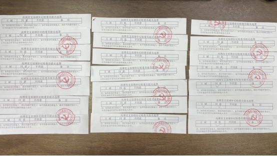 圖為高博黨支部紀(jì)檢委員提名選票展示 2023,高博黨支部全體黨員將堅(jiān)持深入學(xué)習(xí)宣傳黨的二十大會(huì)議精神,充分發(fā)揮黨員先鋒模范作用,立足本職,將二十大提出的目標(biāo)任務(wù)落到實(shí)處,為祖國(guó)的現(xiàn)代化建設(shè)貢獻(xiàn)高博力量。 |