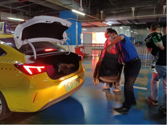 圖二 疏散隊員幫助乘客拿行李 每一份美好的背后,都有不為人知的辛勤汗水和付出,他們用堅守唱響最美勞動之歌。正是有了這些盡職盡責(zé)、默默堅守崗位的普通勞動者的無私奉獻(xiàn),才保證了巡游出租汽車整體工作有條不紊地開展,各項任務(wù)井然有序地完成。通過幾天疏散,巡游出租汽車已得到乘客的認(rèn)可和由衷的祝福。 這些可愛的雷鋒的士隊員以高度的責(zé)任心和奉獻(xiàn)精神,認(rèn)