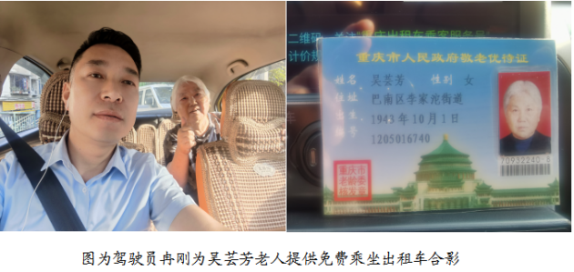 發(fā)表時(shí)間:2023-05-18 15:13作者:渝江來(lái)源:渝江 5月17日下午17:35分許,渝江雷鋒的士大隊(duì)駕駛員冉剛,在重慶花溪醫(yī)院接到一位80歲老人,免費(fèi)送至重慶創(chuàng)泰醫(yī)院就醫(yī)。