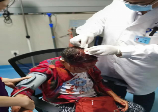 圖二醫(yī)生給傷者進(jìn)行處置 在曾兵師傅的幫助和配合下,劉女士得到及時(shí)救治。其家人內(nèi)心感激之情難以言表,特致電公司表示感謝。
