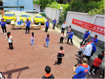圖為美天支隊與荊竹村學(xué)校學(xué)生們進(jìn)行跳繩比賽 本次活動把安全知識教育融入“六一”活動中,引導(dǎo)少年兒童如何正常乘坐汽車,遵守交通法規(guī),陪伴孩子們度過了一個意義非凡的兒童節(jié)。
